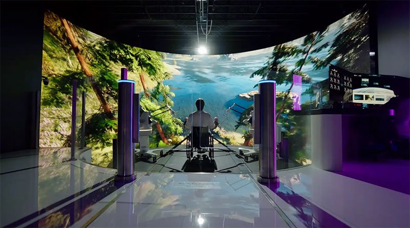 The system integrates advanced technologies such as 6DOF motion platform, six-dimensional force measurement table, led flexible surround screen, adaptive running platform, dynamic weight reduction, motion capture system, upper and lower limb rehabilitation robot, sports training equipment and human-computer interaction software. In order to create an open immersive experience, the R&D team equipped the system with a 180° flexible led wrap-around screen, which conforms to the range of vision of the human eye and has a class 3a picture effect. Facing the surround screen, patients will feel like they are in the virtual environment, interacting and blending with the environment, which is conducive to the rehabilitation treatment.